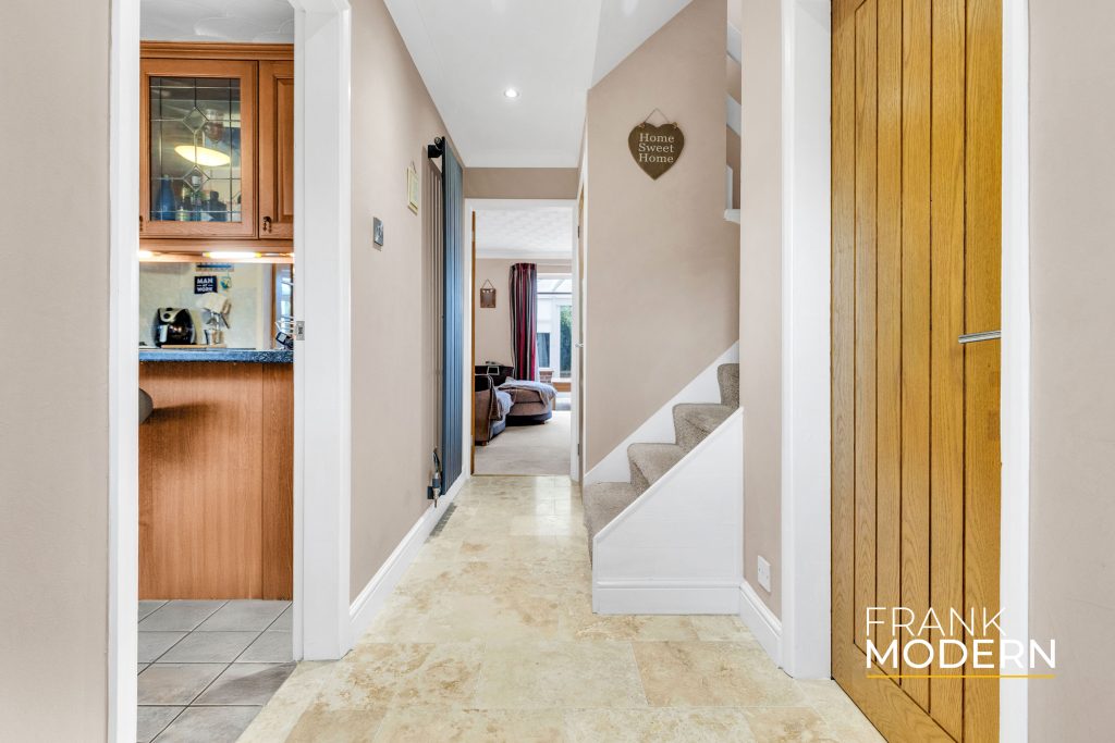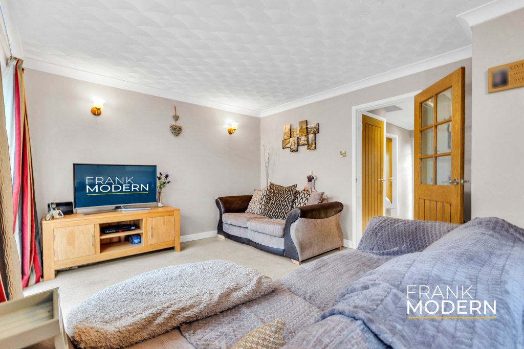 Outside, the front of the home features a neat turfed garden and a hardstanding driveway leading to a single garage. The enclosed rear garden is mainly laid to lawn with a paved patio, perfect for outdoor dining and entertaining.