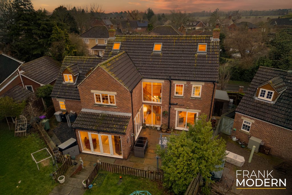 This impressive five-bedroom detached family home enjoys a pleasant elevated position on a no-through road in the charming village of Rippingale. Boasting over 2160 sqft of accommodation across two levels, it features a layout ideally suited to modern family life. The entrance hallway showcases stunning floor-to-ceiling, two-storey windows behind the solid oak staircase, which overlooks the rear garden. The kitchen, designed for modern living, is fitted with contemporary wall and base units, including a breakfast bar/island. It boasts integrated appliances and two French doors that provide access to the patio area behind the house. The lounge benefits from dual-aspect windows and sliding doors, complemented by a fireplace and wood-burning stove. Additionally, there is a separate dining room, a utility room, and a ground-floor W.C. The ground floor features underfloor heating throughout, powered by the oil-fired boiler.