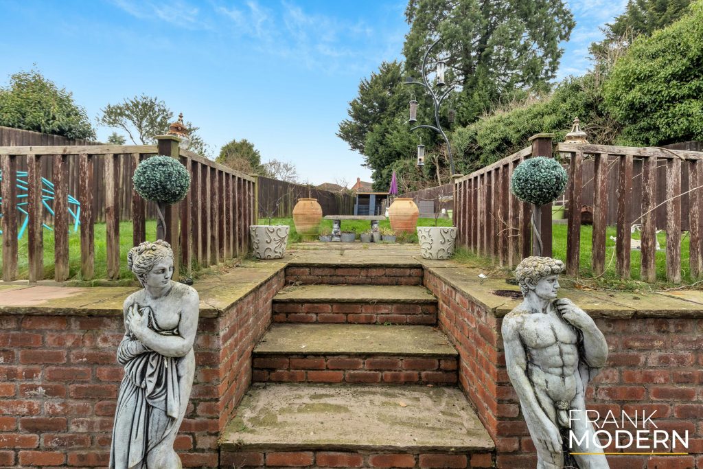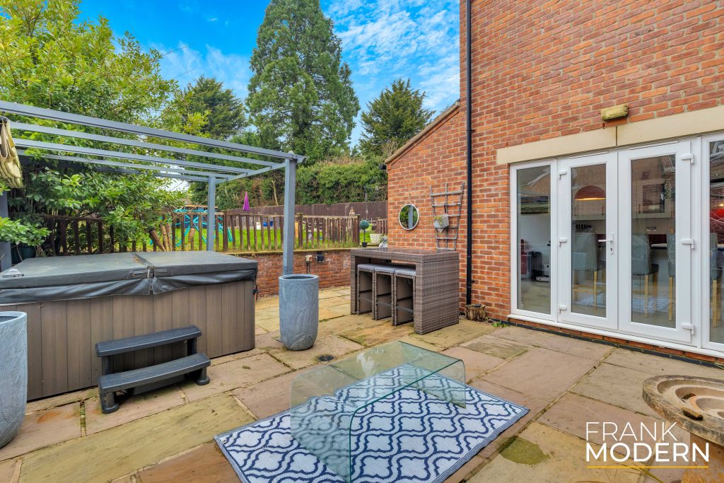 A block-paved driveway in front of the property comfortably accommodates off-street parking for four cars. The driveway leads to the integral double garage, which features electric doors, power, lighting, and internal access to the house. The garage offers the potential to be converted into an annexe (STPP). Behind the property is a sandstone patio area that spans the width of the house. Steps provide access to a raised garden predominantly laid to lawn. The rear garden is fully enclosed with timber fencing.