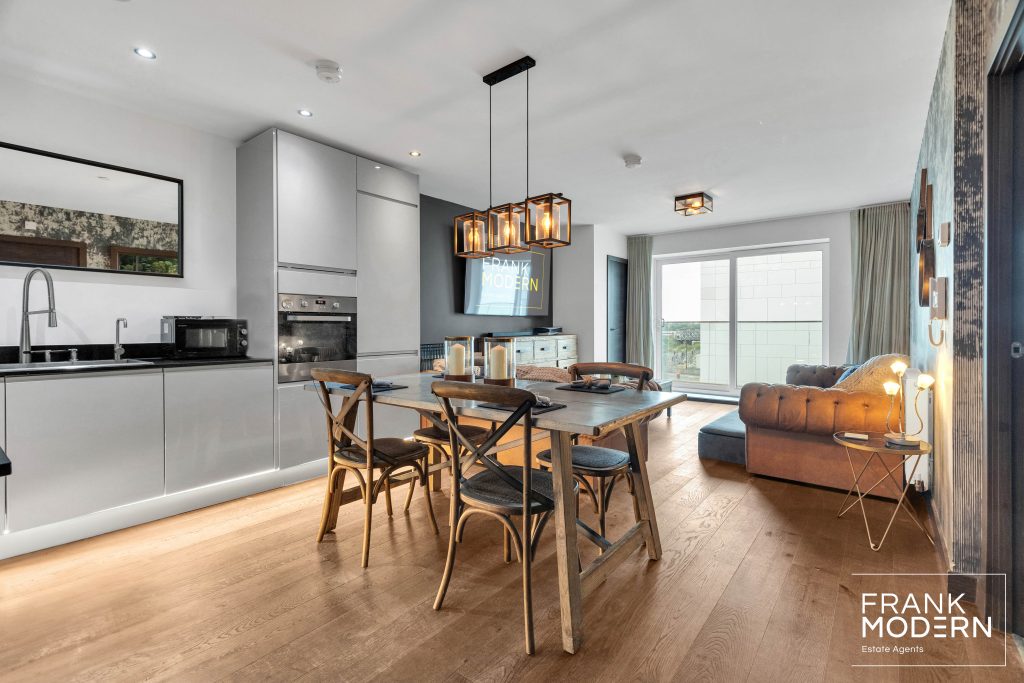 The open-plan living/kitchen space flows beautifully with wooden flooring. The kitchen has beautiful wall and base units with fully integrated appliances and granite worktops. The lounge area continues the wooden flooring and accesses the east-facing balcony via sliding doors. The master bedroom offers a built-in wardrobe and window overlooking the rear aspect. The apartment is finished with a three-piece bathroom.