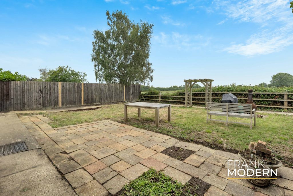 In front of the house is a gravelled driveway allowing off-street parking for multiple vehicles. The driveway leads directly to the attached double garage. Behind the home is a south-facing enclosed garden that adjoins open fields.
